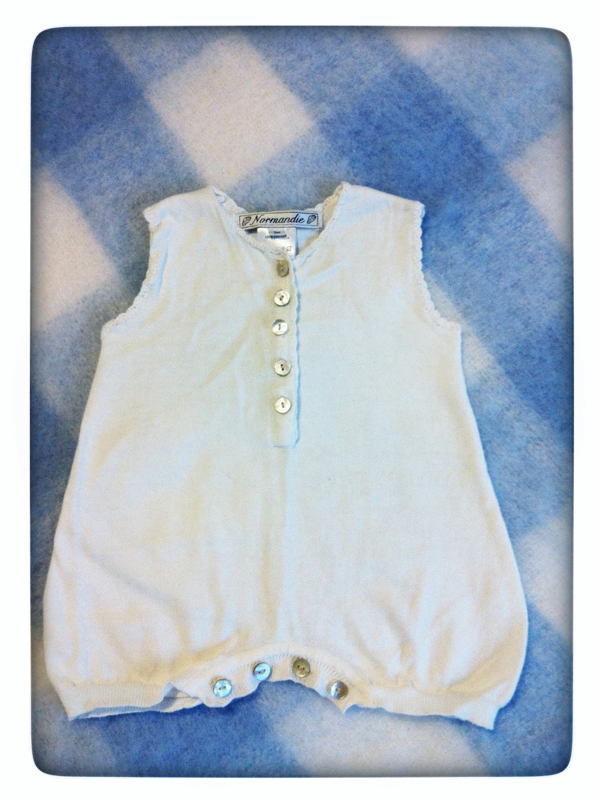 Pelele marca NORMANDIE . Talla 3 meses, pero como toda la ropa de esta marca, yo la encuentro algo escasa de talla, por lo que con uno o dos meses se puede poner perfectamente. Esta prácticamente nuevo, muy finito para el verano. Precio 15€.