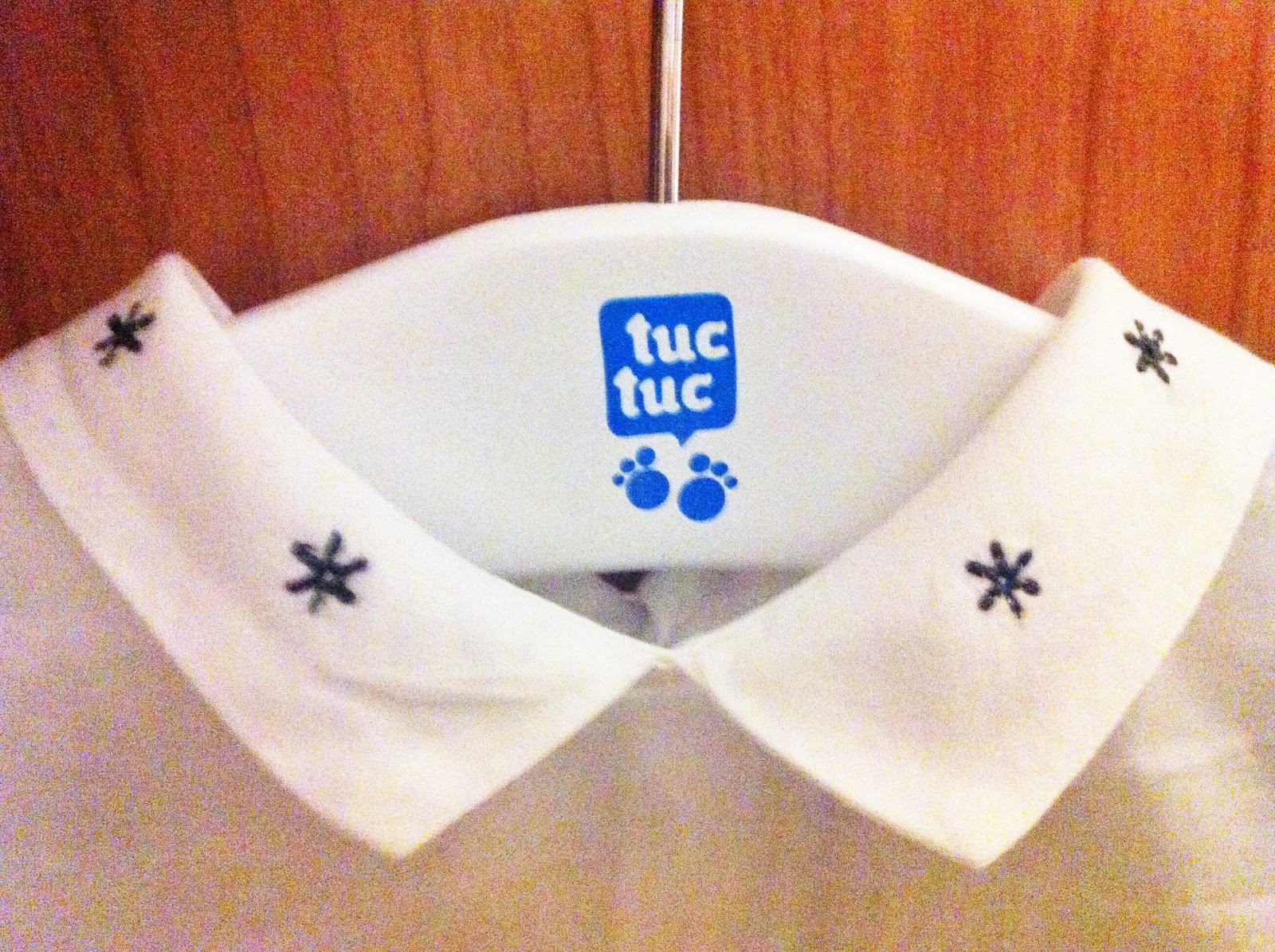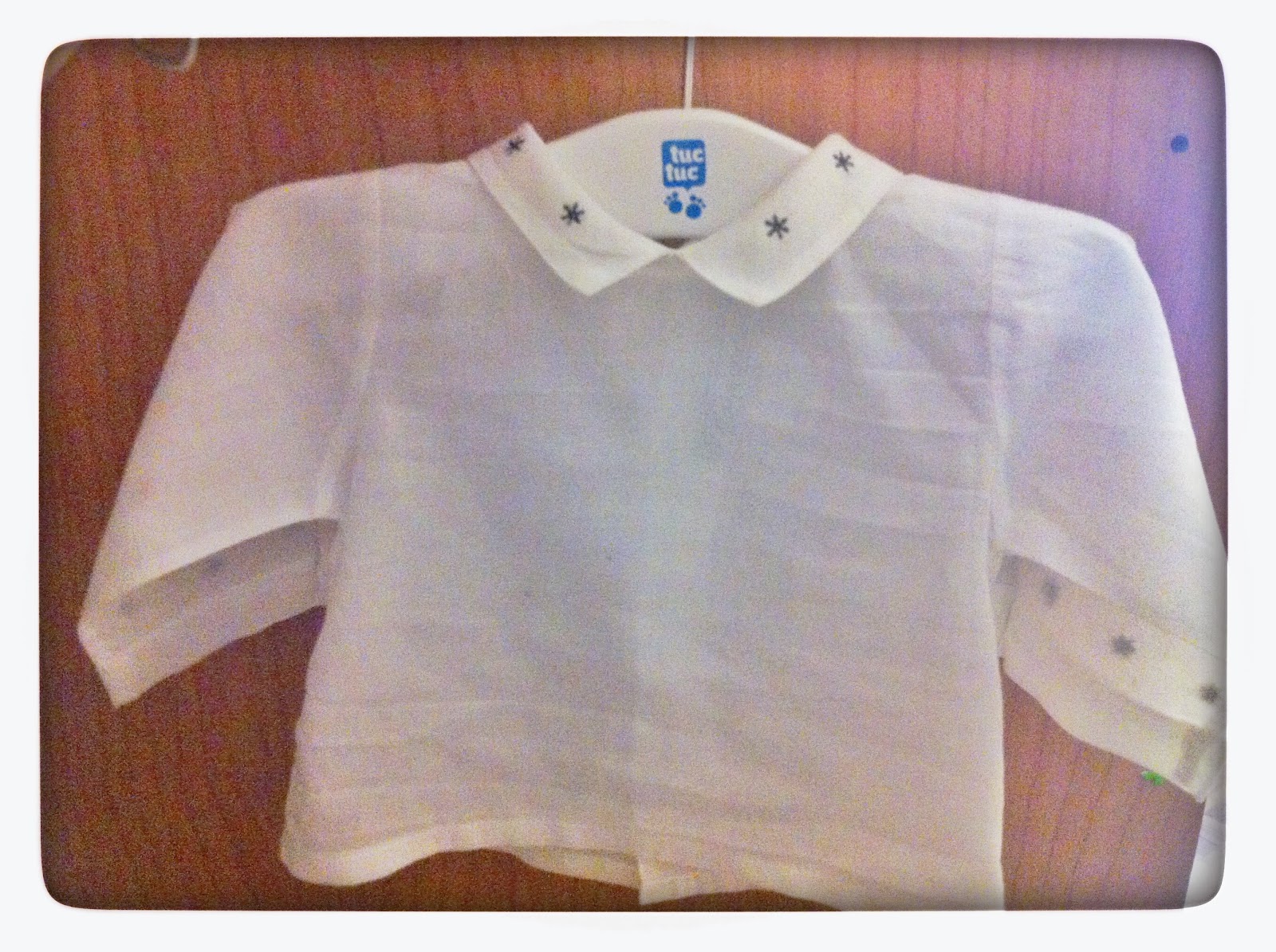 Ahora la camisa de batista. Está bordada en cuello y manga. El precio, también 18 Euros.